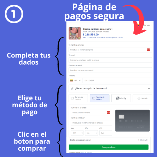 • Al dar clic en el botón «registrarte» (inscribirte, según el botón) serás redirigido a una página donde aparecerán todos los métodos de pago que aceptamos.